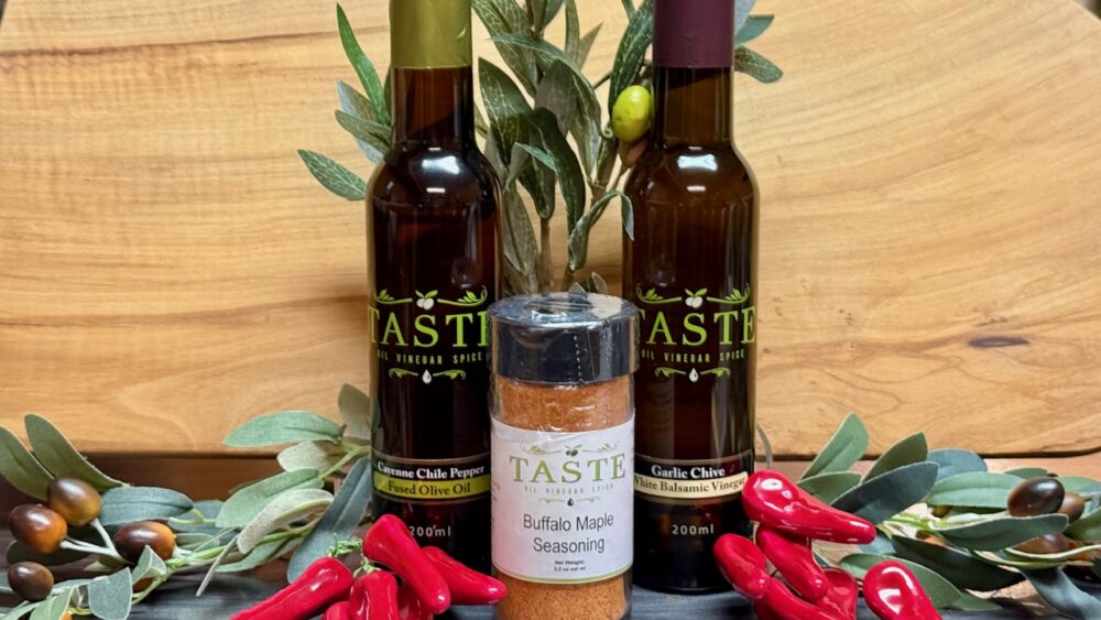 Save 10% when you purchase our Pairing of the Month. Includes two (2) bottles, including one Taste OVS Red Cayenne Chili Olive Oil and one Taste OVS Garlic Chive White Balsamic in the size bottle selected above (200 mL or 375 mL).